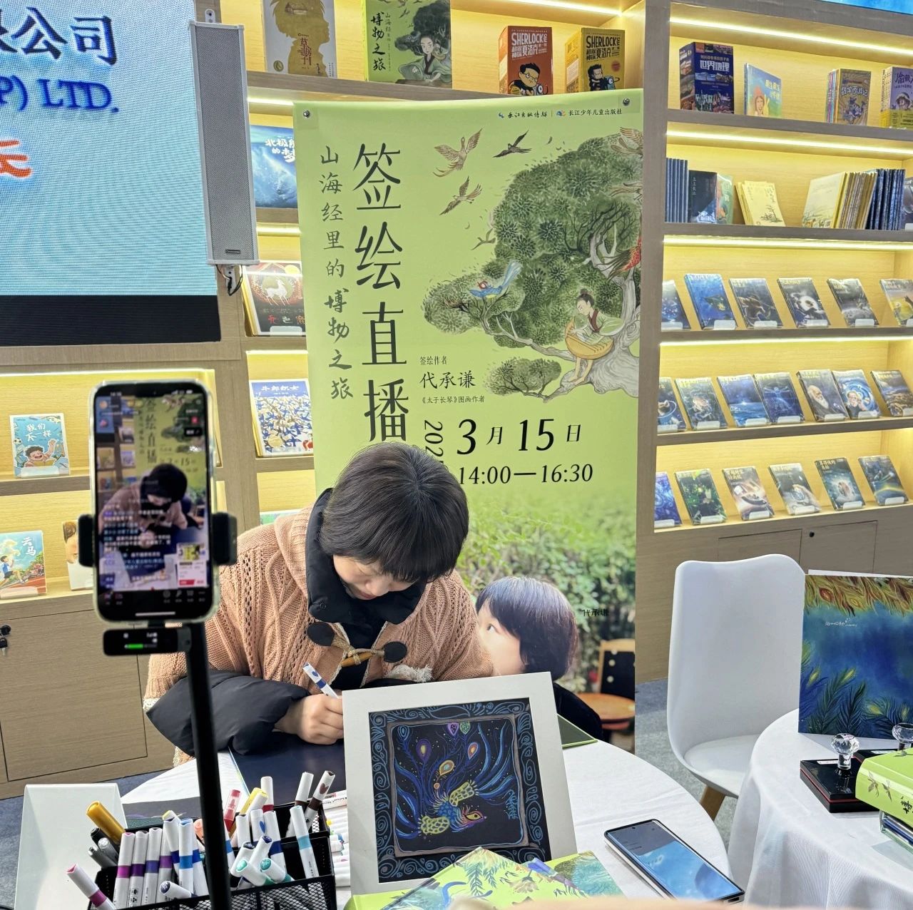2025年3月15日,武漢國際會展中心內人聲鼎沸,《山海經里的博物之旅》繪本分享和現場簽繪及簽繪直播活動在此隆重舉行。本書繪本畫家代承謙出席了本次活動,并在現場進行簽繪。