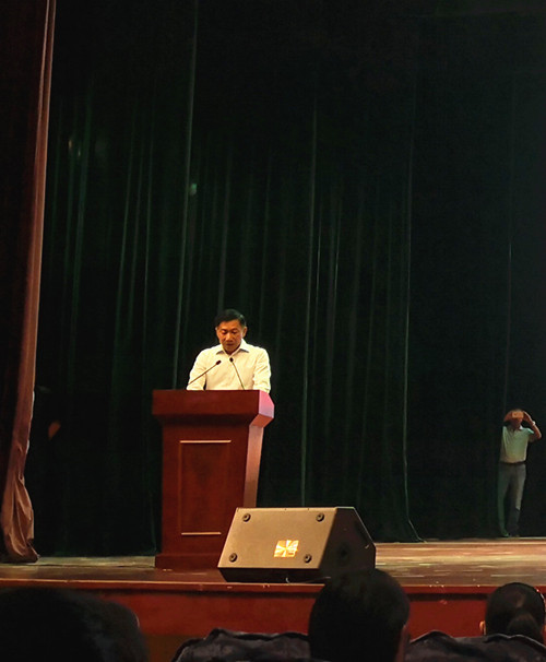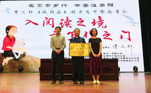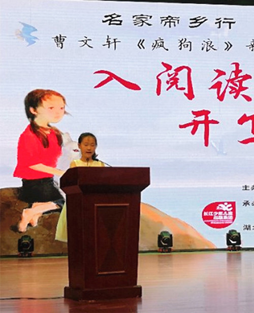 陳棟在主持中說,曹文軒教授的到來,給棗陽這座千古帝鄉、工業新城帶來了一陣文化新風,送來一份文化大禮。他還總結提煉了閱讀和推薦曹文軒的三個理由:一是從曹文軒的作品里可以學會超越舊我,與過去告別——告別幼稚,告別浮躁,告別功利;二是從曹文軒的作品里可以學會認知自我,與現在對話——對話高貴靈魂,對話健康成長;三是從曹文軒的作品里可以學會實現大我,與未來相約——相約生命的價值,相約生活的美好。《瘋狗浪》看似寫狗,其實是在寫人。《瘋狗浪》讓我們重新理解“愛”:愛不分你我,只關有無。《瘋狗浪》讓我們重新詮釋“責任”:歲月靜好,只因為有人為我們負重前行。在這里,讀懂一個全新、真實、立體的曹文軒。
