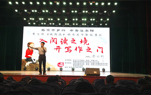 位于湖北省西北部的棗陽市是東漢開國皇帝劉秀的故里,人文薈萃,底蘊深厚,素有“帝王之鄉”的美譽。2018年10月7日上午,能夠容納1500余人的棗陽劇院座無虛席、氣氛熱烈,北京大學教授、中國首位國際安徒生獎獲得者、當代著名兒童文學作家曹文軒來到棗陽,帶來了一場“入閱讀之境,開寫作之門”主題講座,讓孩子們體驗了一次全面立體的閱讀、寫作之旅。