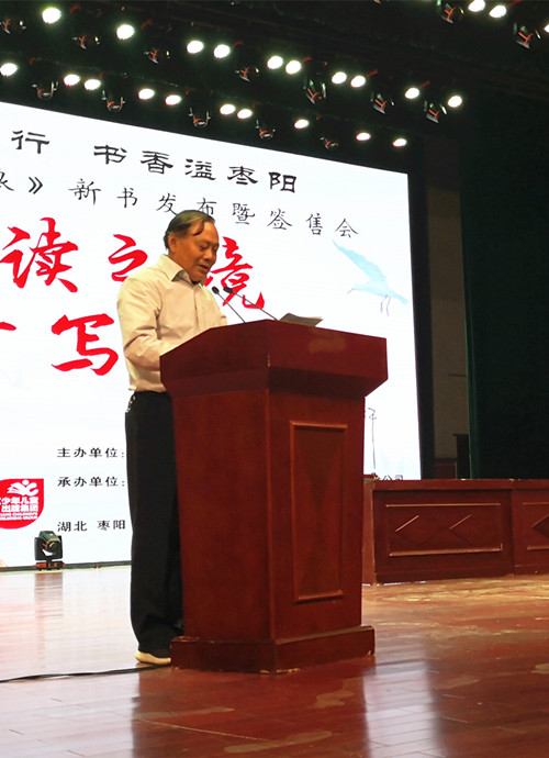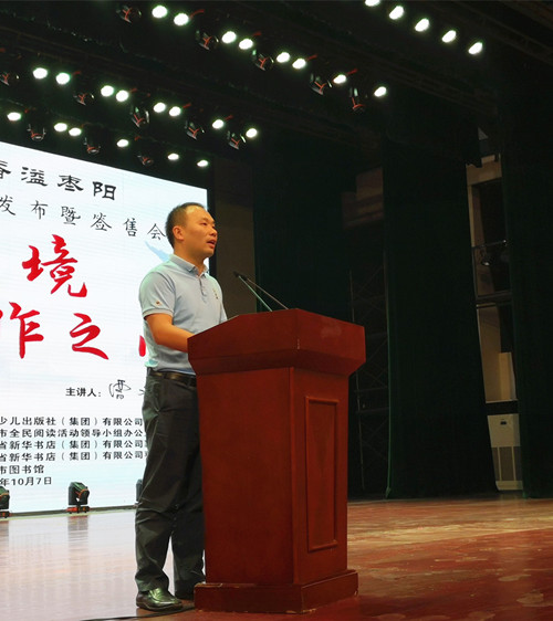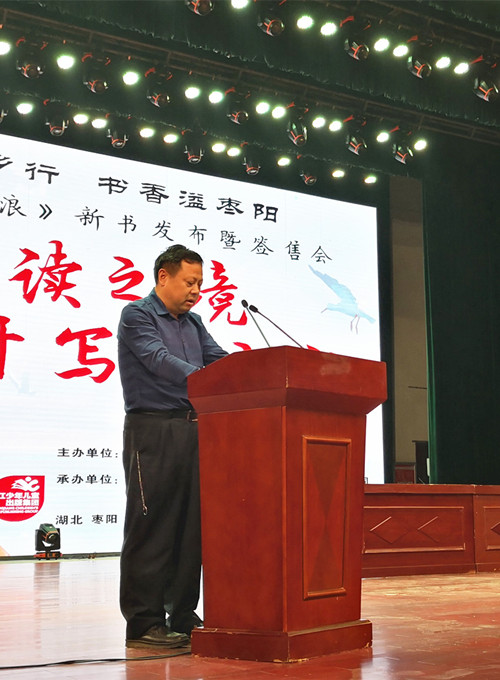 本次講座是棗陽市“楚天少兒悅讀季”全民閱讀活動的重頭戲,由長江少年兒童出版社(集團)有限公司、棗陽市全民閱讀活動領導小組辦公室共同主辦,襄陽市新華書店、棗陽市新華書店、棗陽市圖書館承辦,長江少兒集團總經理陳棟、副總經理姚磊,棗陽市副市長劉國清、棗陽市東漢文化研究會名譽會長趙正鵬、襄陽市新華書店總經理柏濤出席活動。