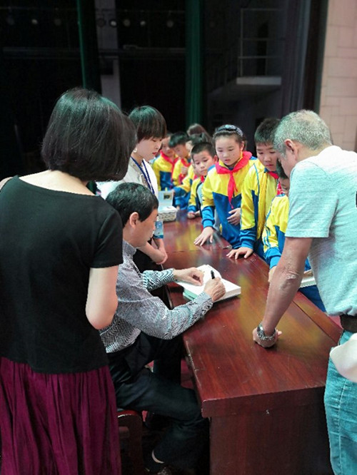 活動現場,曹文軒教授進行了新書《瘋狗浪》的簽售。簽名活動開始時,小讀者們排起長長的隊伍,爭相請曹文軒簽名留言并合影留念。其代表作《草房子》《火印》《紅瓦》等深受讀者歡迎,現場及前期預售圖書共計6000余冊。