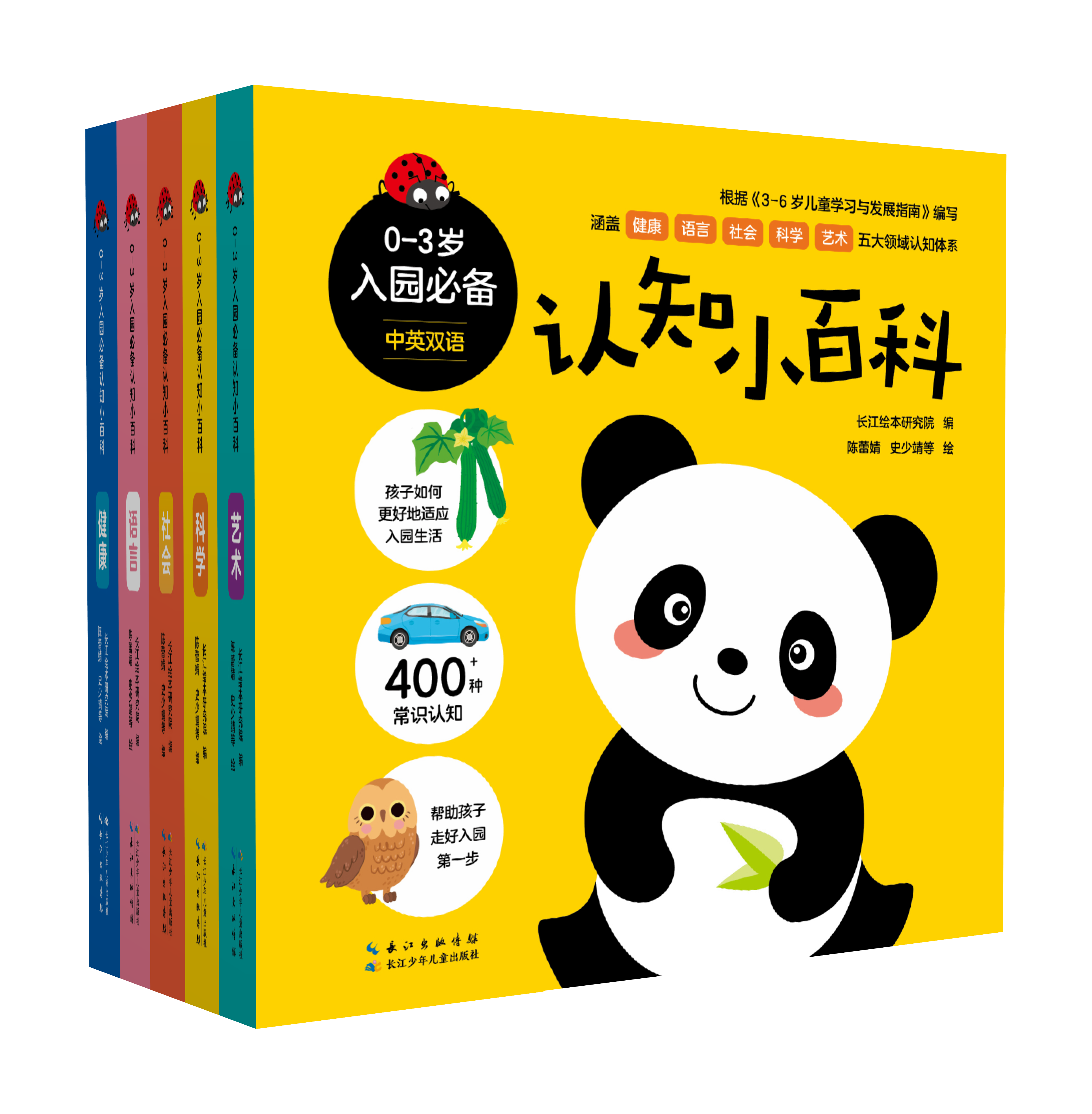 《0-3歲入園必備認知小百科》共5本,為0-3歲入園必備常識認知紙板游戲書。整套書系圍繞教育部《3-6歲兒童學習與發展指南》的五大領域為依托,包含:語言、科學、數學、藝術、社會等領域,建立全面的認知系統,為入園做好準備。用小朋友最喜歡的游戲形式,增強孩子閱讀興趣的同時,帶孩子認知動物、數字、顏色、形狀、聲音等。套裝中有《0-3歲入園必備認知小百科·健康》《0-3歲入園必備認知小百科·語言》《0-3歲入園必備認知小百科·社會》《0-3歲入園必備認知小百科·科學》《0-3歲入園必備認知小百科·藝術》。全書開本小巧,適合孩子隨時拿在手上閱讀,中英雙語,滿足語言學習需求。