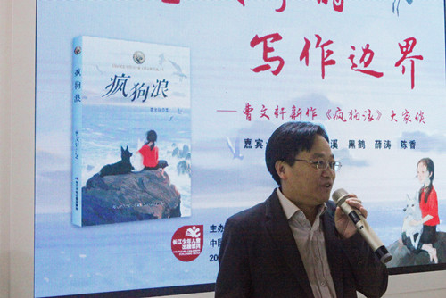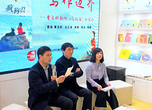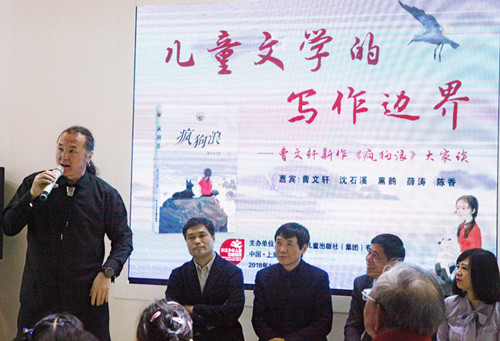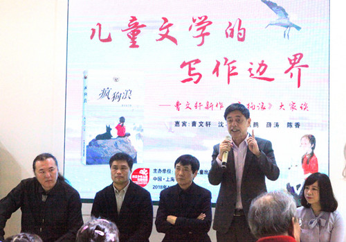 2018年11月10日上午,由長江少年兒童出版社(集團)有限公司主辦的“兒童文學的寫作邊界——曹文軒新作《瘋狗浪》大家談”活動在上海國際童書展曹文軒館舉行。著名兒童文學作家曹文軒、沈石溪、薛濤、格日勒其木格·黑鶴與《中華讀書報》編委、中國兒童文學研究會副秘書長陳香齊聚一堂,以“兒童文學的寫作邊界”為主題,圍繞曹文軒教授的新作《瘋狗浪》進行深入對談。
