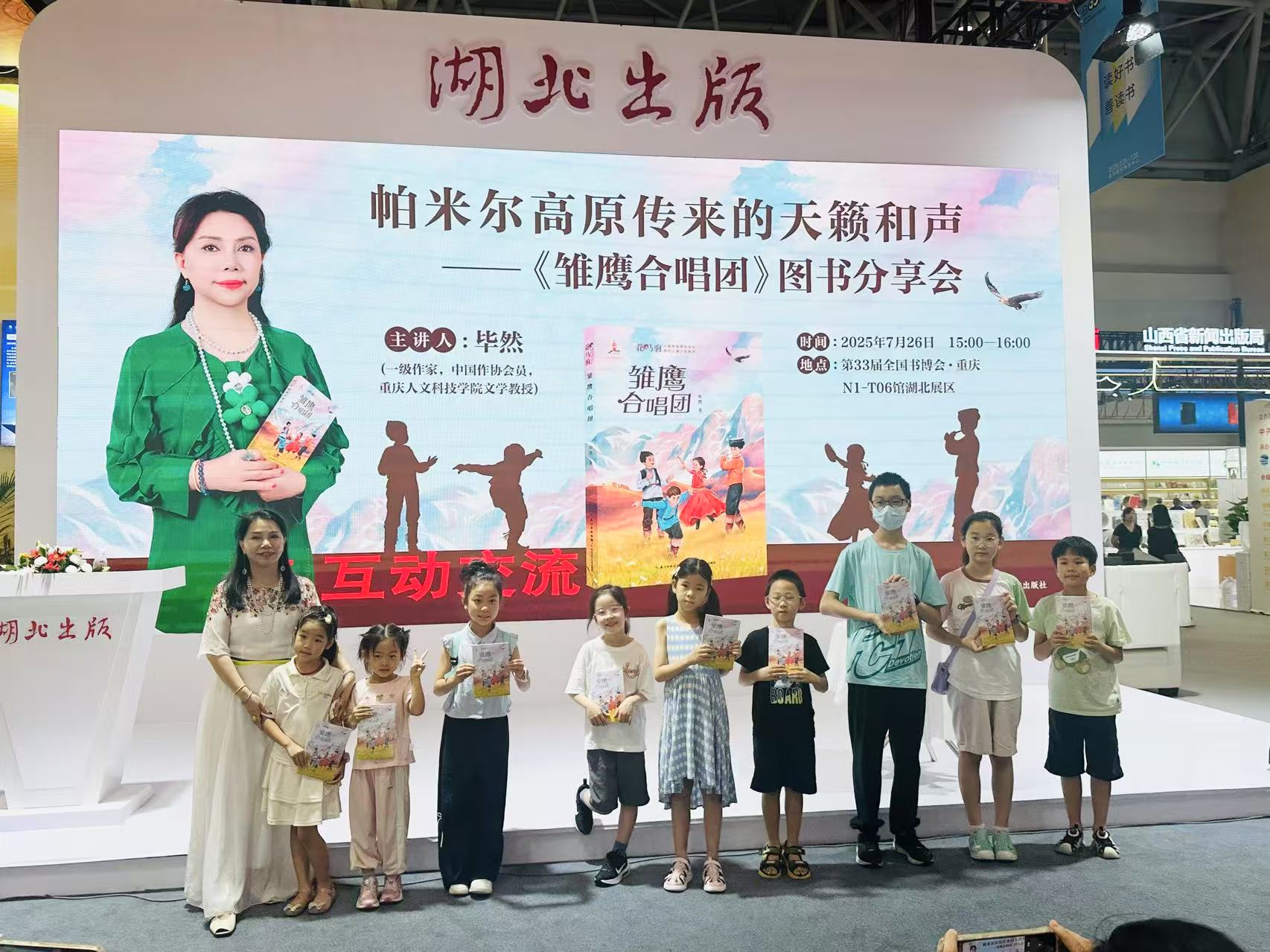 7月26日下午,作家畢然攜其原創圖書《雛鷹合唱團》現身于重慶國際博覽中心舉行的第33屆全國圖書交易博覽會。在湖北館,畢然老師為小讀者帶來了一場精彩的圖書分享會。