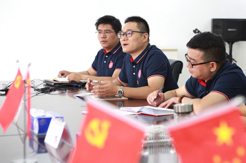 在聽取有關情況之后,何四新社長對長江少兒出版集團 “紅扣子”黨建品牌創建工作進行了高度評價。他表示,長江少兒出版集團打造的“紅扣子”黨建品牌,堅持以習近平新時代中國特色社會主義思想為指導,從思想建設、組織建設、作風建設、制度建設、反腐倡廉建設、純潔性建設等6個方面全面貫徹落實了新時代黨的建設總要求。同時在會上對長少集團黨建工作提出了四點期望,希望長江少兒出版集團能在“紅扣子”黨建品牌創建工作中 “立得住,叫得響,推得開,走得遠”。