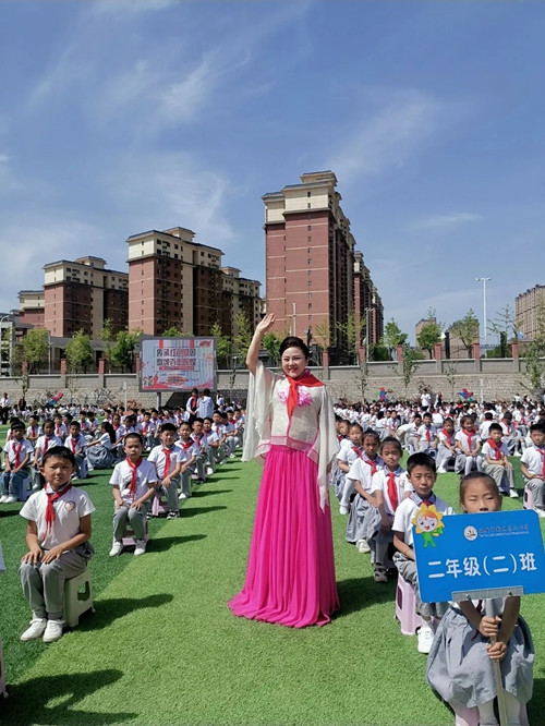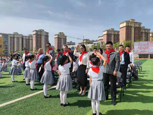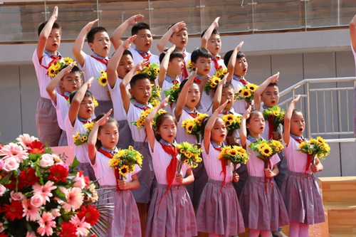活動伊始,全體佩戴紅領巾,奏國歌,少先隊員獻詞,兒童節的氣氛莊重而熱烈。
