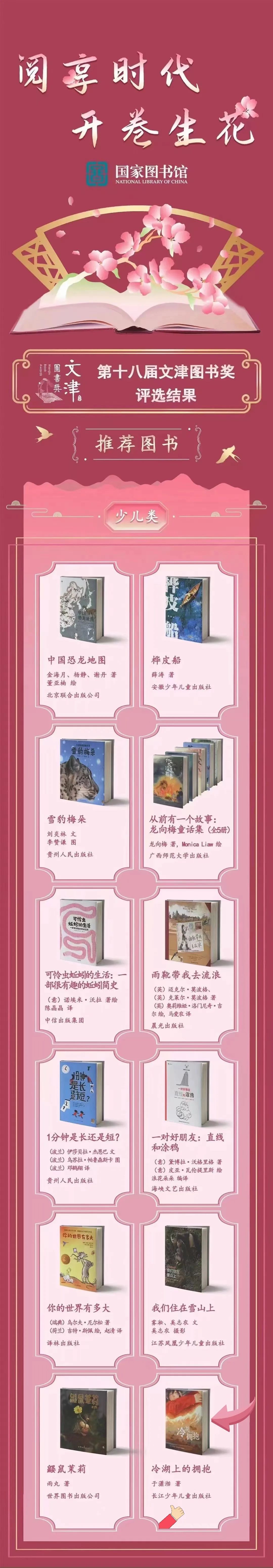 2023年4月23日,是第28個世界讀書日。國家圖書館舉辦了“閱享時(shí)代 開卷生花——第十八屆文津圖書獎發(fā)布暨2023年國家圖書館4·23世界讀書日特別活動”。活動現(xiàn)場揭曉了第十八屆文津圖書獎。經(jīng)過初評和終評等環(huán)節(jié),最終評選出獲獎圖書19種和推薦圖書38種。其中,長少社《冷湖上的擁抱》榮獲本屆文津圖書獎推薦圖書,從近2000種參評圖書中脫穎而出。
