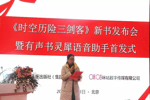 2017年1月13日上午10點,在北京國際展覽中心1號館湖北展區(qū),冰心兒童文學(xué)獎得主、知名青年作家黃春華原創(chuàng)兒童歷險小說《時空歷險三劍客》新書發(fā)布,其有聲書在靈犀語音助手同步上市。長江少年兒童出版社(集團)有限公司總經(jīng)理程國重、咪咕數(shù)字傳媒有限公司副總經(jīng)理陳滌非以及作家黃春華出席發(fā)布會并致辭。