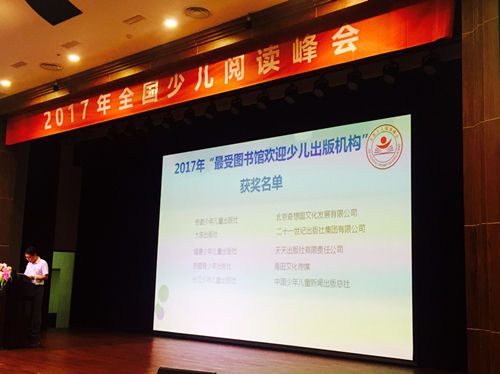 峰會以“館社聯動·開辟少兒閱讀推廣新天地”為主題,評選并表彰了“2017十佳繪本”、“2017十佳繪本館”、“2017最受圖書館歡迎少兒出版機構”,長江少兒出版社榮獲“2017最受圖書館歡迎少兒出版機構”稱號。