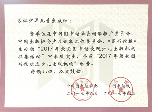 2014年6月—2017年6月,長江少年兒童出版社(集團)有限公司連續位居“開卷”實體零售市場全國少兒排行榜第二。