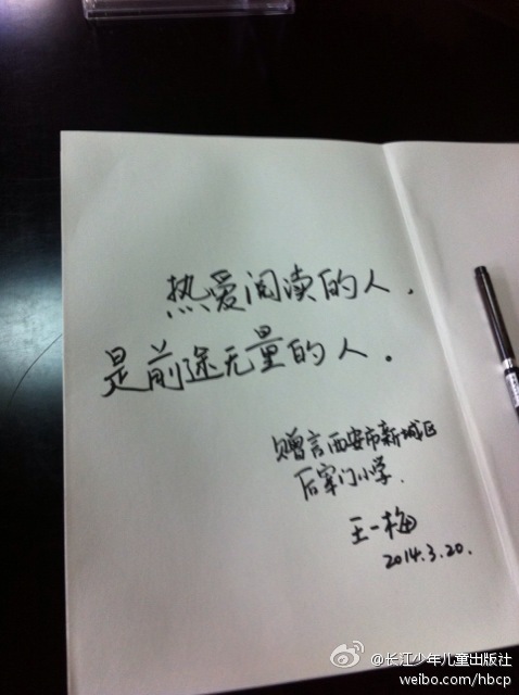 長江少年兒童出版社“2014名家校園行”活動正式開啟, 3月20日,長江少年兒童出版社邀請中國抒情童話的代表作家——王一梅走進西安后宰門小學及高新第二小學,與中低年級小讀者開展了一場有關“寫作的三個法寶”的互動講座,幫助學生領悟科學的寫作秘訣。