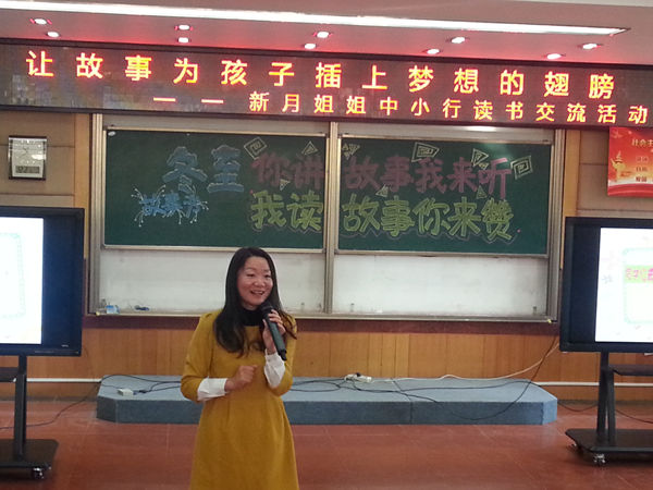 作家新月姐姐參加了故事節中華路小學分會場“我講故事你來聽,你講故事我來贊”的活動。她現場教同學們主持《講故事》欄目,現場點評小主持人的方式,讓孩子們練習大膽自信表達。新月姐姐還為同學們帶去了她在我社出版的新書《做自己最好》、《謝謝你的愛》,與同學們進行了熱烈的閱讀分享,整個會場充滿了感動和愛的旋律。