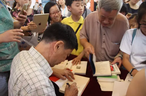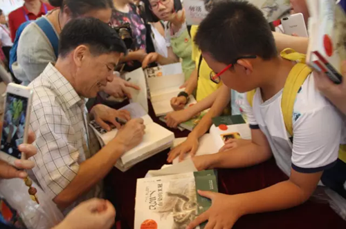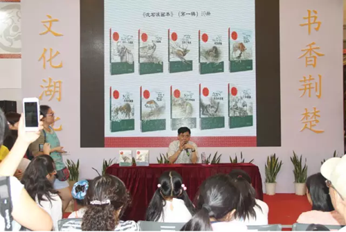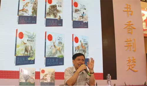 書展第一天,著名兒童文學作家、“中國動物小說大王”沈石溪的簽售會在湖北主賓館活動區舉行。活動現場,沈石溪做了名為《大自然給了我創作靈感》的演講,現場簽售了《沈石溪畫本》第一輯和第二輯,以及8月最新出版的《沈石溪畫本·注音書系列》第一輯。