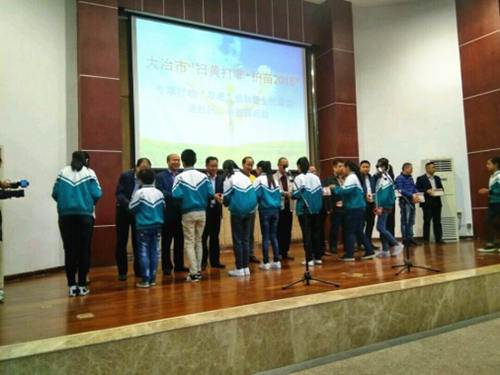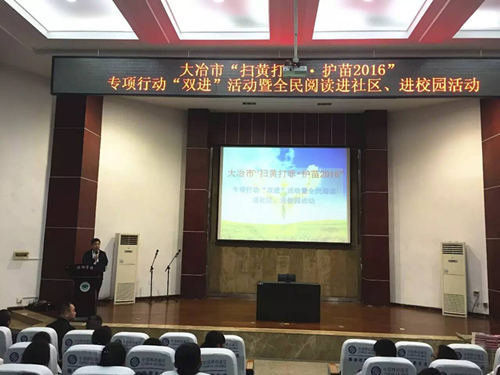 10月13日上午,大冶市“掃黃打非·護(hù)苗2016”專項(xiàng)行動(dòng)“雙進(jìn)”活動(dòng)啟動(dòng)儀式在大冶市濱湖中學(xué)舉行。長(zhǎng)江少年兒童出版社(集團(tuán))有限公司副黨委書(shū)記兼總經(jīng)理程國(guó)重參加了啟動(dòng)儀式并致辭。隨后,參會(huì)領(lǐng)導(dǎo)向大冶市濱湖中學(xué)的同學(xué)贈(zèng)送了我社圖書(shū)。