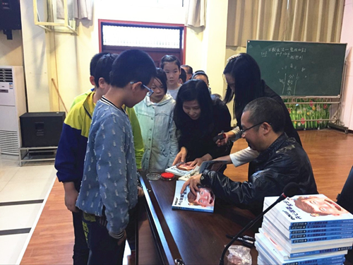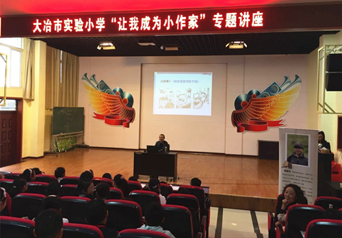 10月14日上午,黃春華為大冶市實(shí)驗(yàn)小學(xué)的同學(xué)帶去了名為“讓我成為小作家”的專題演講,以《校園童盟》的創(chuàng)作過(guò)程為例,教大家如何使故事具備相對(duì)獨(dú)立、完整的開(kāi)端、發(fā)展、高潮和結(jié)尾。現(xiàn)場(chǎng)反響熱烈,講座結(jié)束后作家為同學(xué)們簽名贈(zèng)書(shū)。