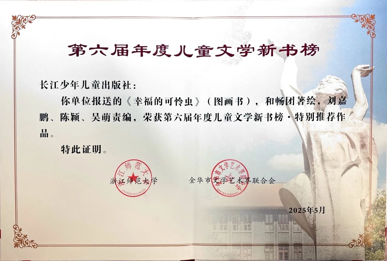 近日,第六屆年度兒童文學新書榜揭曉。長江少年兒童出版社《幸福的可憐蟲》榮獲特別推薦作品。