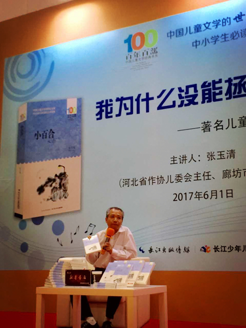 2017年6月1日下午1點30分,在第27屆全國圖書交易博覽會唐山會場,冰心兒童圖書獎得主、廊坊市作家協(xié)會主席、河北省作協(xié)兒委會主任、著名作家張玉清的原創(chuàng)文學(xué)小說《百年百部中國兒童文學(xué)經(jīng)典書系·小百合》(2016版)分享會熱烈舉行,現(xiàn)場小讀者悉心聆聽,沉浸在文學(xué)的世界中。