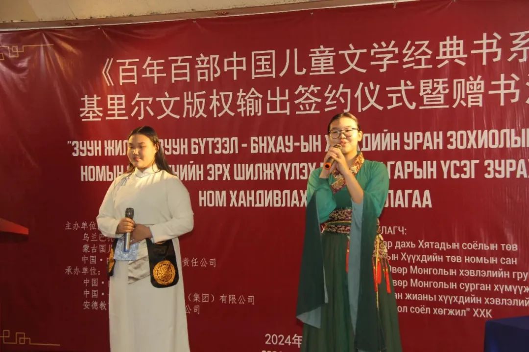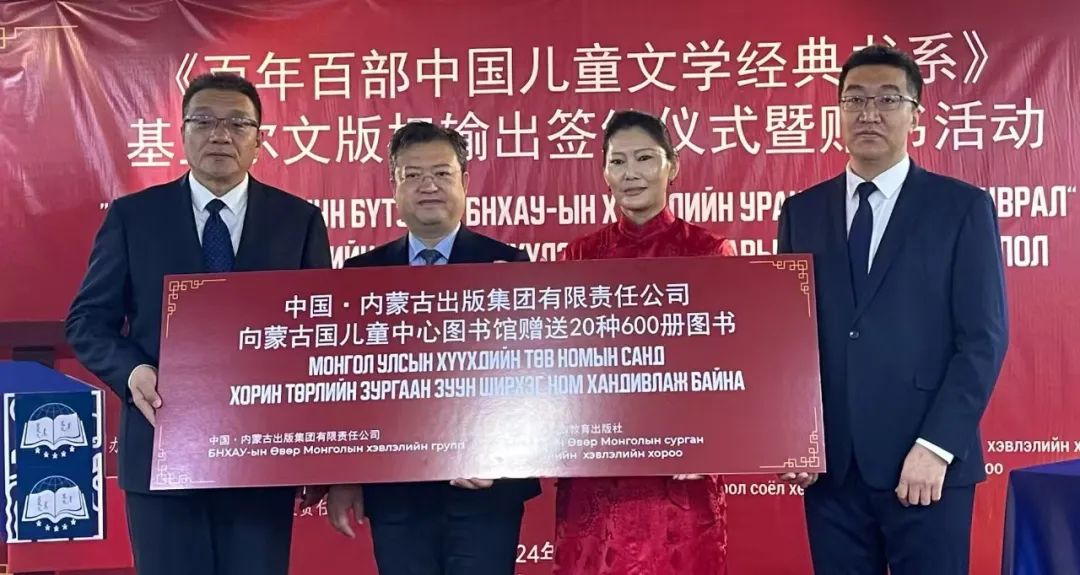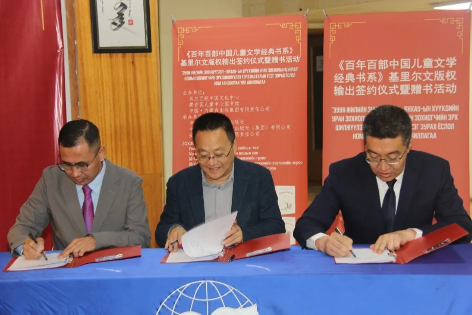 2024年11月5日,在“感知中國(guó)”·內(nèi)蒙古文化周活動(dòng)舉辦期間,由內(nèi)蒙古出版集團(tuán)有限責(zé)任公司、烏蘭巴托中國(guó)文化中心、蒙古國(guó)兒童中心圖書館聯(lián)合主辦,內(nèi)蒙古教育出版社、長(zhǎng)江少年兒童出版社(集團(tuán))有限公司和蒙古國(guó)安德教育文化發(fā)展有限責(zé)任公司共同承辦的《百年百部中國(guó)兒童文學(xué)經(jīng)典書系》基里爾文版權(quán)輸出簽約儀式暨贈(zèng)書活動(dòng),在烏蘭巴托舉行。長(zhǎng)江少年兒童出版社(集團(tuán))有限公司黨委書記、董事長(zhǎng)何龍,首席編輯傅箎代表我社出席活動(dòng)。