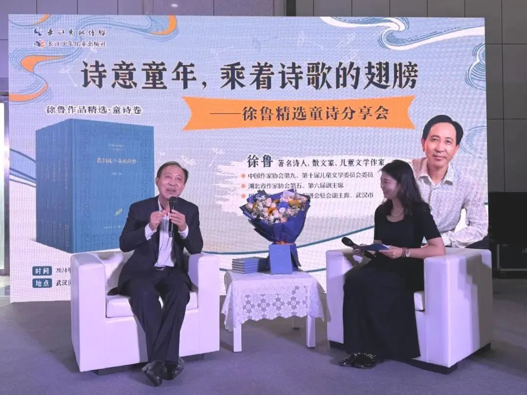 9月28日上午,以“詩意童年,乘著詩歌的翅膀”為主題的徐魯精選童詩分享會作為“書香長江”閱讀周武漢書展暨第十九屆華中圖書交易會的活動之一,于武漢國際會展中心圓滿舉行。著名詩人、散文家、兒童文學作家徐魯老師親臨現場,與眾多熱愛詩歌的讀者們分享了他的童詩創作中的詩心與詩意。