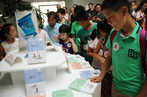在精品圖書展示區,少兒社老師分別給小讀者們介紹了兒童文學、少兒科普、精品繪本以及“中國畫本館”等重點圖書產品線。其中,《百年百部中國兒童文學經典書系》《劉興詩爺爺講述系列》以及“葛瑞米·貝斯”繪本系列頗受孩子和家長的關注和喜愛。