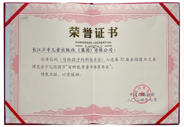 本屆少兒閱讀節(jié)以“書香浸潤童心,科技成就未來”為主題,并于現(xiàn)場發(fā)布了“百種優(yōu)秀童書推薦書目”,設立了“百種優(yōu)秀童書沉浸式互動體驗”的展覽。其中,由長江少年兒童出版社出版的《寫給孩子的科技前沿》入選。