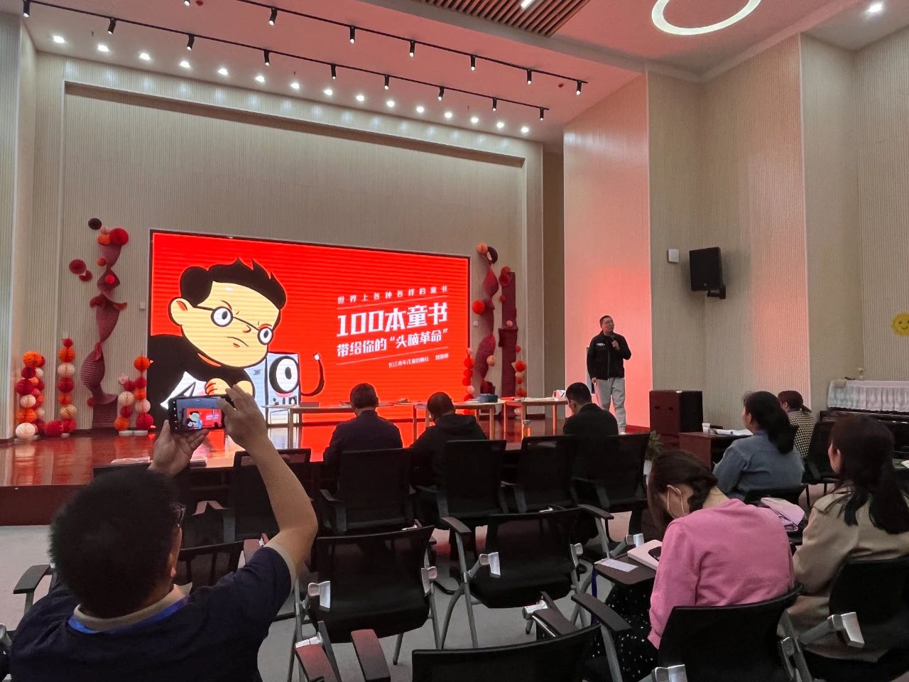 長江少年兒童出版社繪本編輯室主任劉嘉鵬以“100本童書帶給你的‘頭腦革命’”為主題,分享了趣味又好玩的各類童書,并著重推薦了我社《哐當(dāng),哐當(dāng),過中秋》《來喝水吧》《跟著手指去旅行》等眾多優(yōu)質(zhì)圖畫書,令在場的老師們意猶未盡。