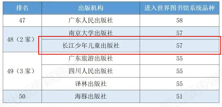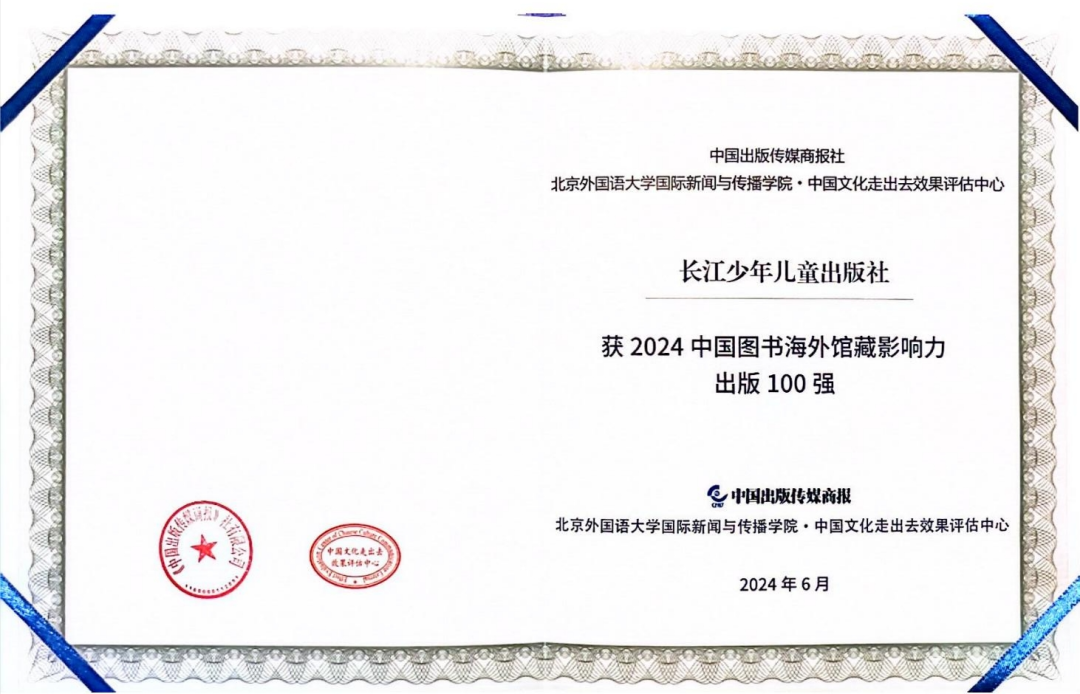 長少社連續9年位列“中國圖書海外館藏影響力出版100強”。在最新公布的“2024年度中國圖書海外館藏影響力百強排行榜”中,長少社排名第48位,連續3年在全國專業少兒社中居第二位。