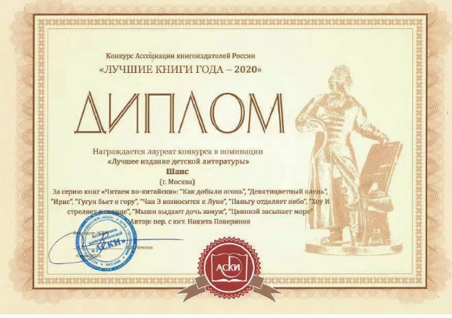 《百年百部中國兒童圖畫書經典書系》中的《老鼠嫁女》俄文版、《九色鹿》俄文版獲得俄羅斯2020年度“少兒文學類”最佳圖書獎。