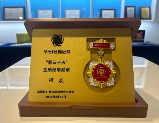 在華語科幻星云獎(jiǎng)十五周年慶典活動(dòng)上,星云獎(jiǎng)組委會(huì)向突出貢獻(xiàn)個(gè)人授予了“星云十五”紀(jì)念勛章。董事長何龍被華語科幻星云獎(jiǎng)組委會(huì)主席團(tuán)授予“星云十五”金質(zhì)紀(jì)念勛章,科普分社編輯宋傳珠被授予“星云十五”銀質(zhì)紀(jì)念勛章。